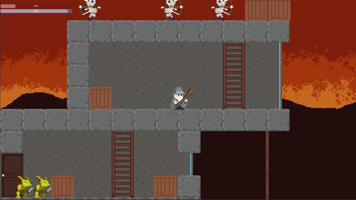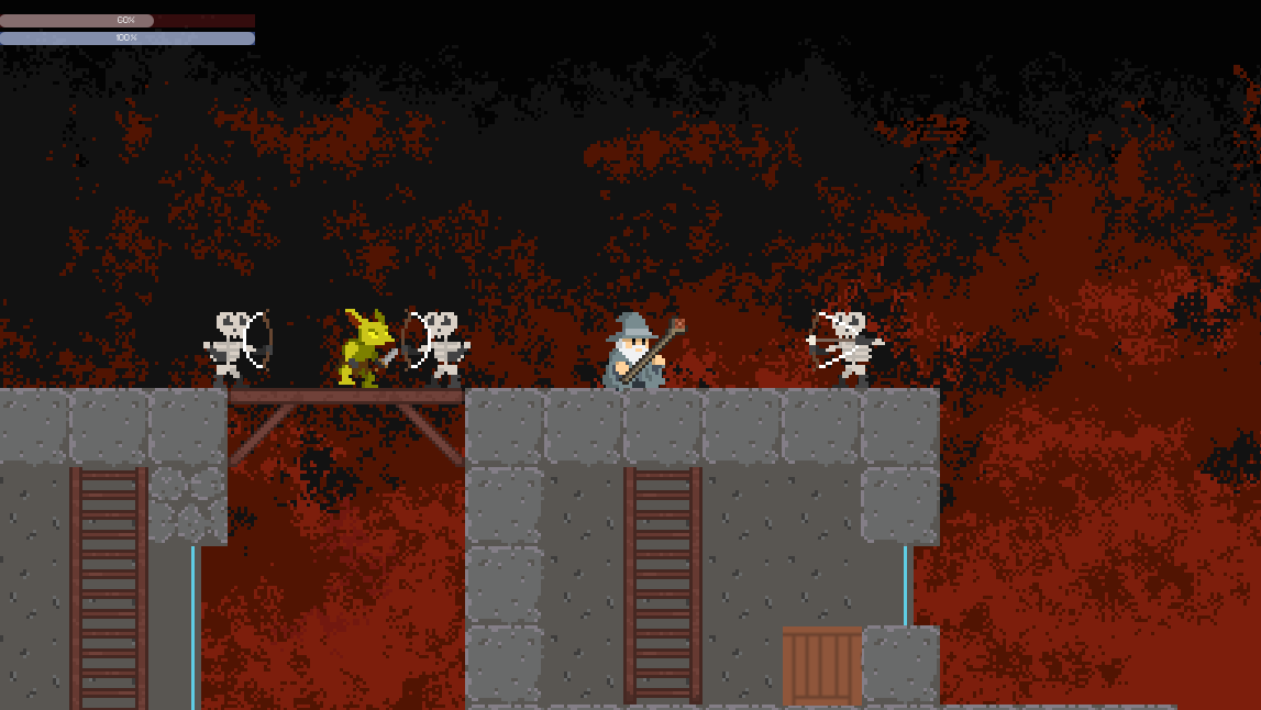 Caótico juego de acción 2D pixel art donde hordas infernales te rodean. Inspirado en el humor y acción de Broforce.